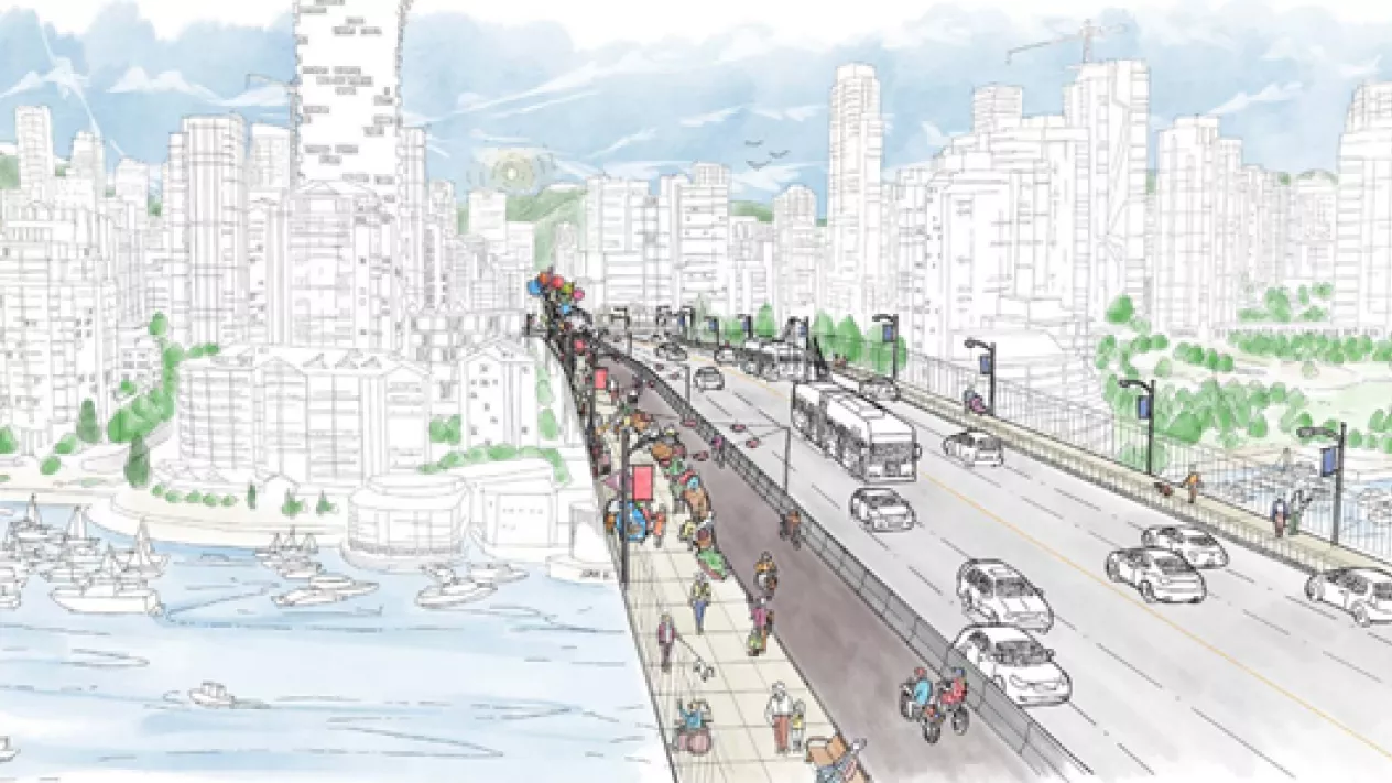 L’un des principaux objectifs du projet consiste à soutenir les initiatives de la Ville de Vancouver en matière d’urgence climatique en permettant davantage de déplacements à l’aide de moyens de transport durables, en rendant la marche, le patin et le vélo sur le pont plus accessibles, sécuritaires et confortables pour les personnes de tout âge et de toute capacité, de même qu’en offrant des voies directes et intuitives pour les piétons, patineurs et cyclistes vers les principales destinations ainsi qu’au réseau de transport durable.