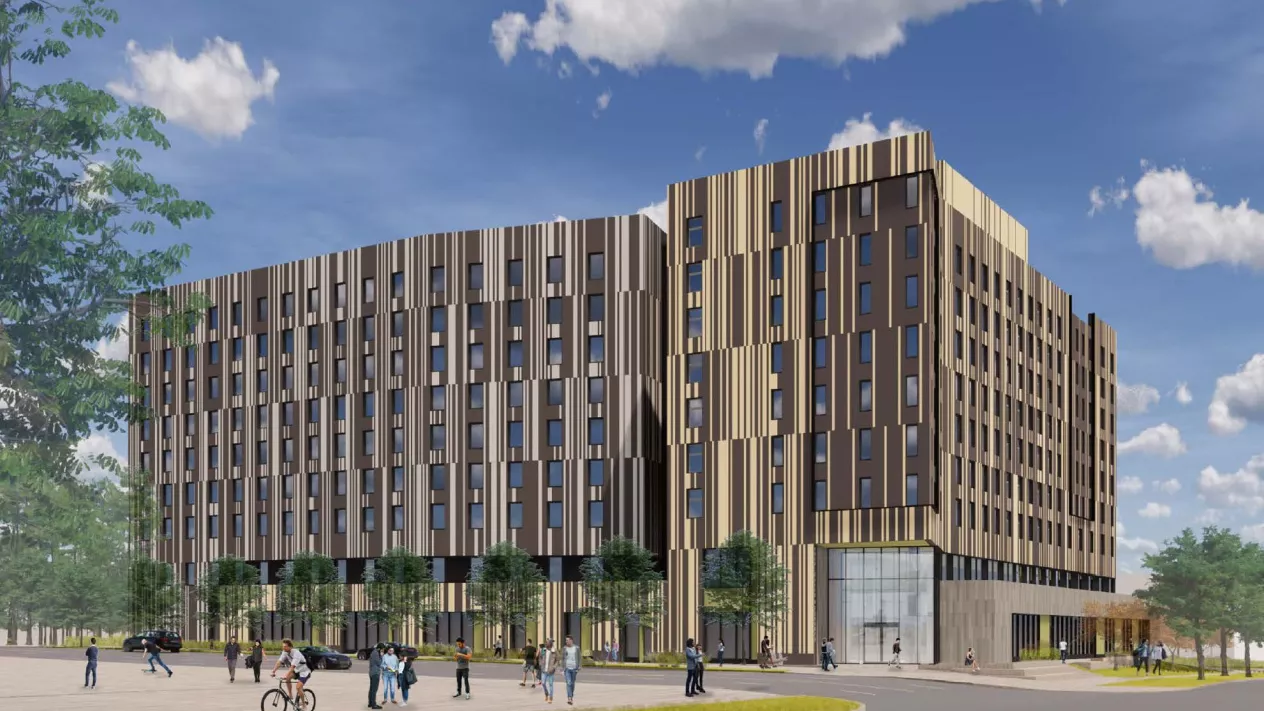 Le bâtiment est construit selon la norme de haute performance Maison Passive. Il comporte de nombreux éléments de conception à faible consommation d'énergie, notamment une isolation et des fenêtres à haut rendement, ainsi que des systèmes de construction qui réduisent considérablement la consommation d'énergie de 40 à 60 % par rapport aux bâtiments conventionnels. Il offrira aux étudiants de première année un cadre de vie axé sur la communauté, qui concilie les habitudes de vie académiques, sociales et durables. Avec ses neuf étages et ses 746 chambres, dont beaucoup sont adaptées aux besoins des étudiants handicapés, la résidence sera au cœur d'une vie de campus dynamique.